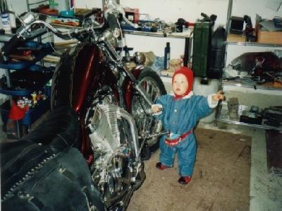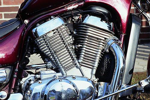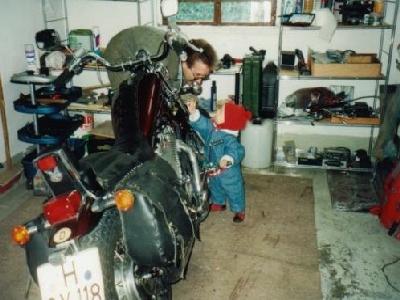 | Als ich die VS 750 gebraucht erwarb, ahnte ich noch nichts von den Problemen, die sich mit sich bringen sollte. Als erstes flog die selbstgedengelte Sitzbank runter (sie hängt heute noch als abschreckendes Beispiel dörflicher Dilettanten-Polsterkunst in meiner Garage)… und der Ape war auch nicht der Bringer: die Züge waren vom Vorbesitzer zu kurz bemessen, die Kabel waren angescheuert, usw. Der Kauf eines Wide-Bar-Lenkers brachte mich der Sache, die ich wollte, schon näher. |